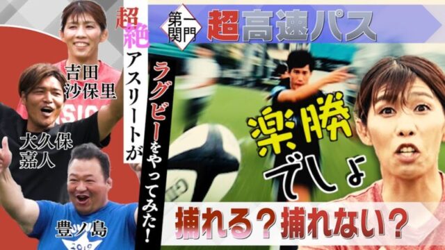 【吉田沙保里 大久保嘉人 豊ノ島】超絶アスリートがラグビーをやってみた! 第一関門 捕れる?捕れない?ラグビーの基本スクリューパス